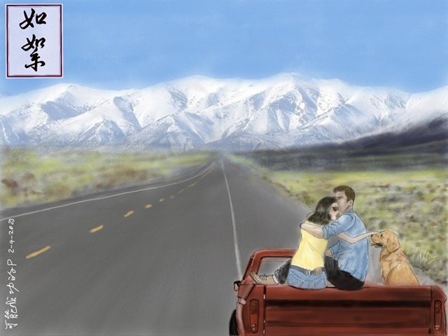 春天的加州,万物复苏,绵延的山地和丘陵被各色野花渲染成织锦地毯。大朵的白云圆润润地低垂在路的尽头,像是蓝天上翻起的浪花一样。Dusty穿过平坦的山谷,上了山路,以平稳的车速在山间岩石边穿行。他的心情很好,似乎身上的伤痛都减轻了很多。有时候,他会自言自语和背包里的Maria的骨灰聊几句,指给她看沿途的风景。很久没有这种“目的感”了,这让他[