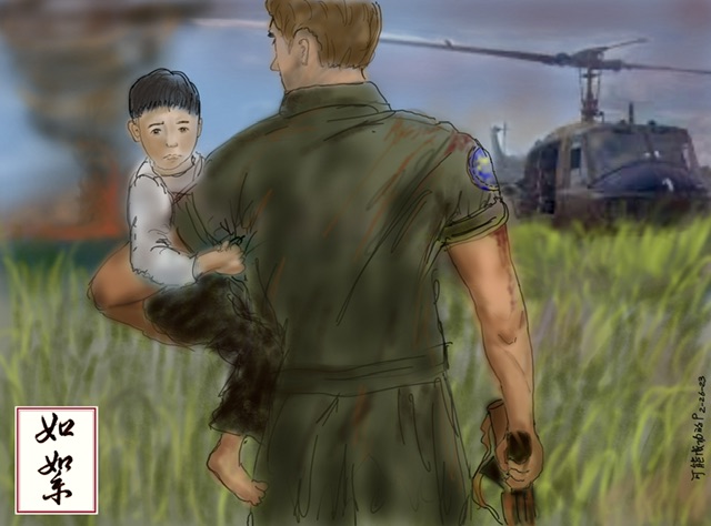 “我需要一把刀。”Dusty说。一众人沉默了几秒钟,领头的人递了一把匕首给他。“别耍鬼心眼!”一个声音在背后叫道:“不然我一枪崩了他!”Dusty回头一看,小猫正举着AK-47,抵住了Tom的脑袋。小猫脸上充满了愤怒和鄙夷,深深的眼窝里冒出来仇恨的光。Dusty心里明白了,小猫应该是越共的。如果不除掉自己和Tom,他就回不去南越继续当卧底和发毒品财。[