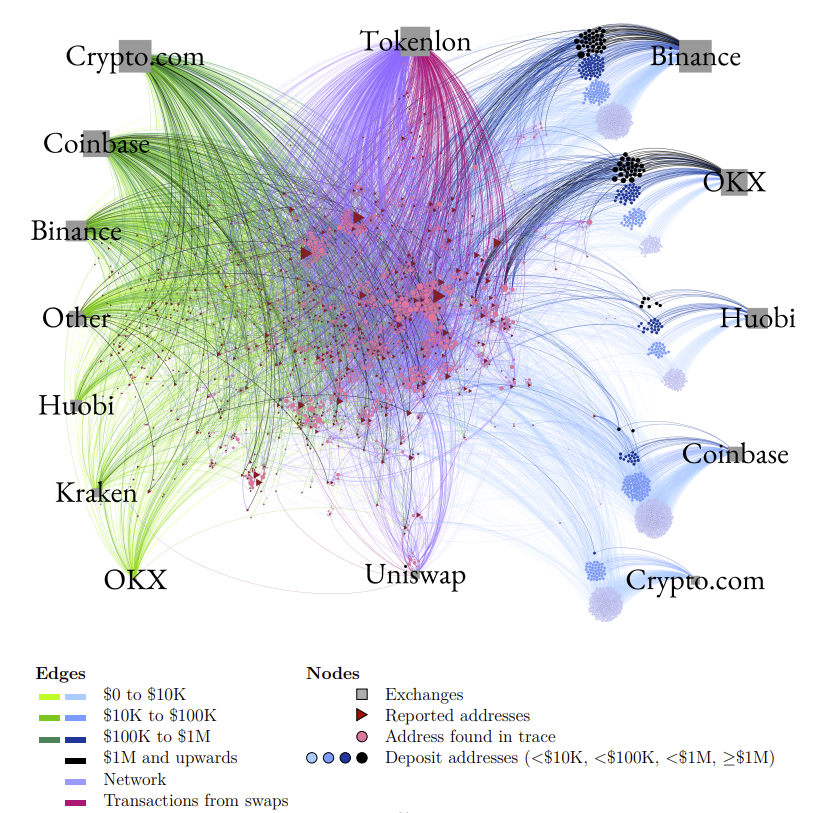 UT-Austin金融学教授约翰·格里芬(JohnGriffin)和研究生凯文·梅(KevinMei)收集了4000多名欺诈受害者的加密地址,自疫情大流行以来,欺诈行为迅速流行。通过区块链追踪工具,他们追踪了从受害者到诈骗者的资金流向,诈骗者主要集中在东南亚。曾撰写有关金融市场欺诈的文章的格里芬表示,从2020年1月到2024年2月,四年来,犯罪网络向加密货币交易所转移了超过750亿美元。[