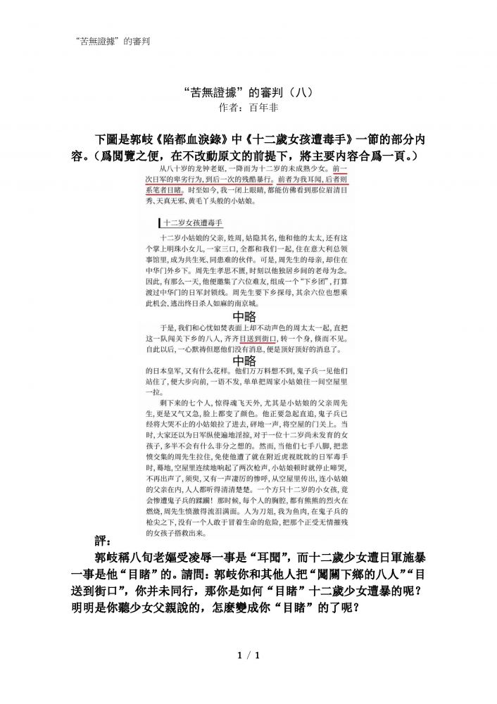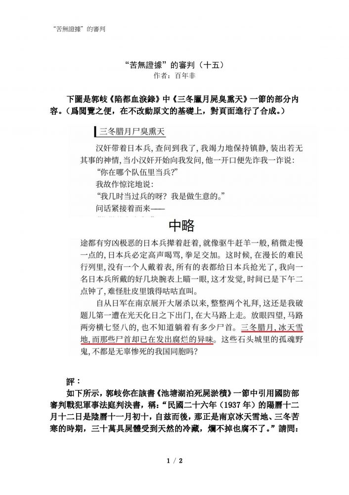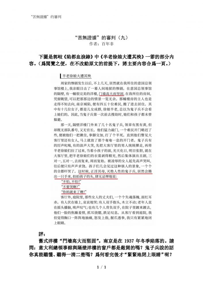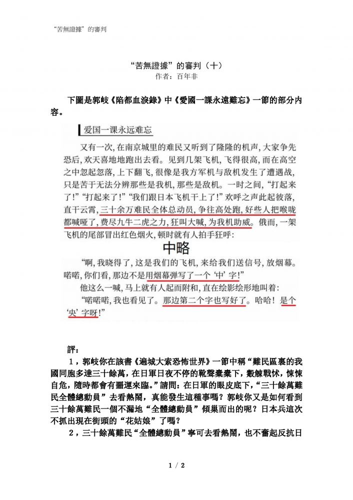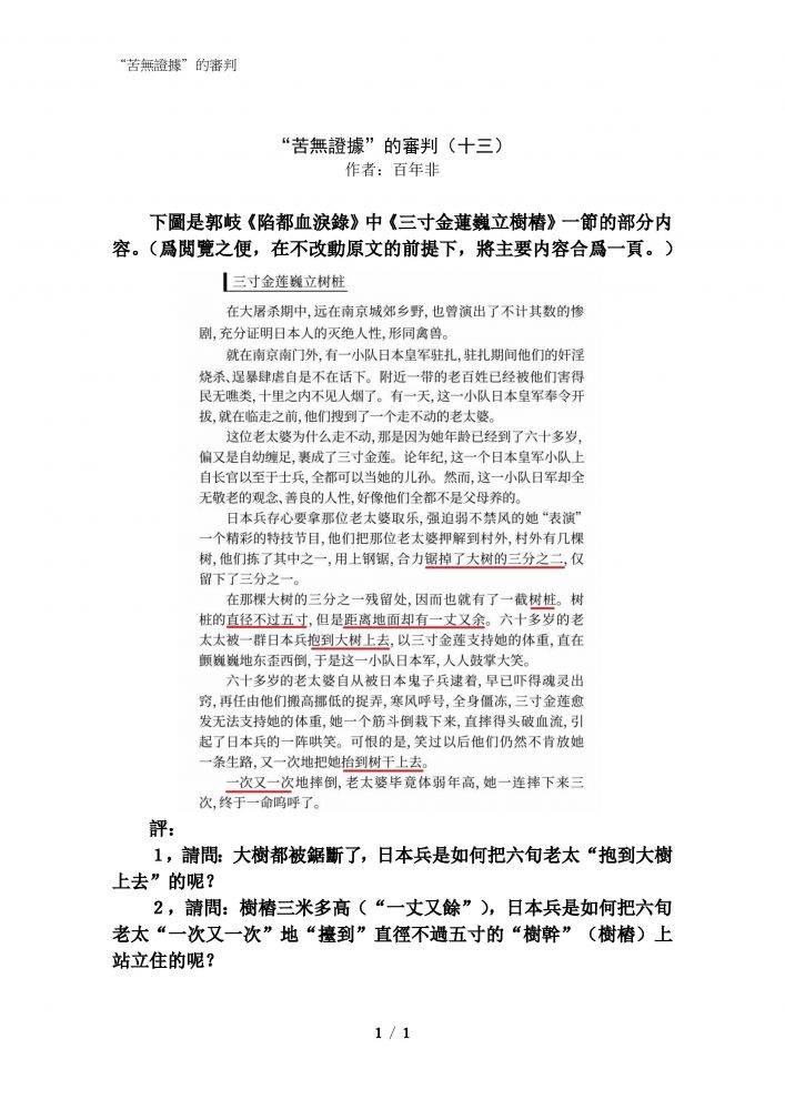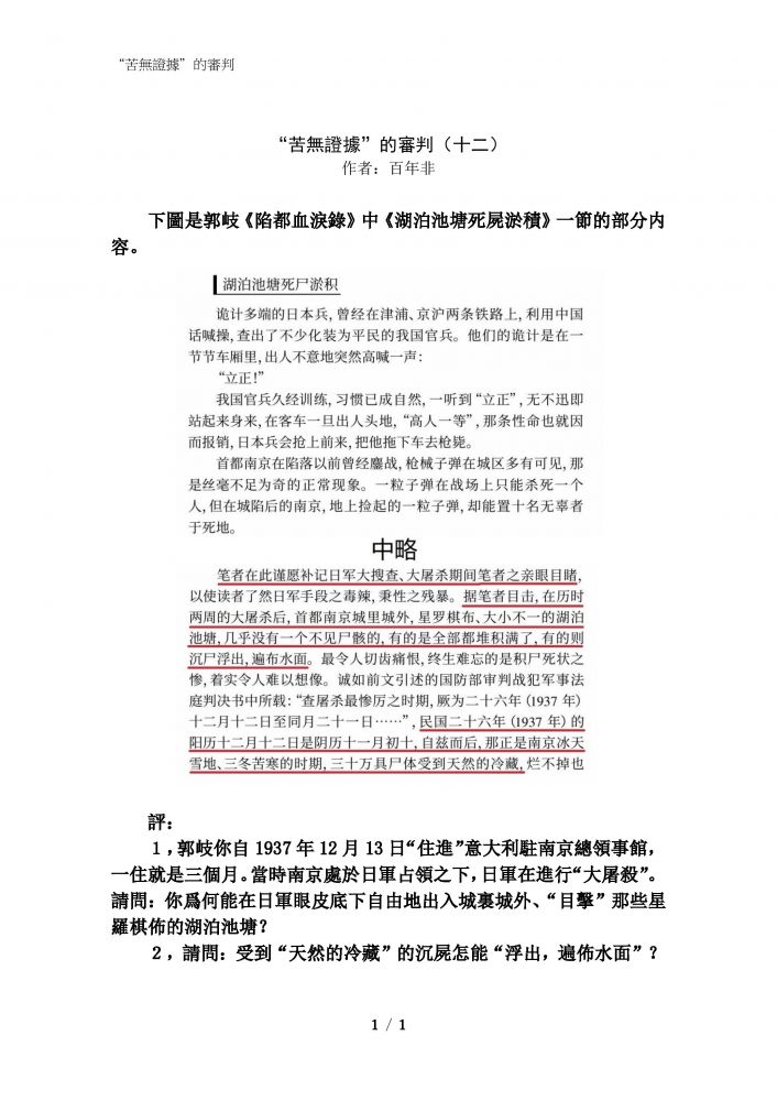难以看完。 结论是什么? 死难者300000 的论点没...