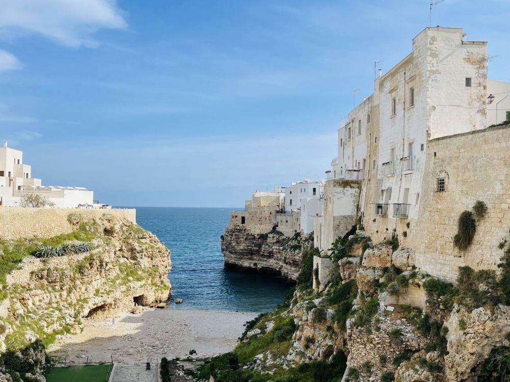 波利尼亚诺(Polignano)是意大利南部普利亚大区的一座迷人的海滨小镇,坐落在亚得里亚海的崎岖海岸线上。这个小镇以其绚丽的海景、迷人的古城和岩石悬崖而闻到名,被誉为“亚得里亚海的珍珠”。整座小镇像是建在一大片悬崖之上,满眼都是白色或黄色的建筑,错落有致的排列着,连接着蓝绿色的大海,对比强烈却又浓情融合,堪称南意最美小城。石灰岩悬崖笔直[