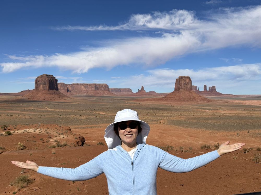 我们在Page,Arizona最后一天的行程是一场“郊游”,去了有二个小时车程之外的MonumentValley,全称是Oljato-MonumentValley,也是属于NavajoNation的保留地。这一片红土地之所以如此名扬天下,原来还缘于TomHanks在1994年拍的电影ForestGump。在这部名片里有一个名场面:经过三年多在美国全境内的跑来又跑去,阿甘忽然止住了脚步,停了下来。他停下的位置就是在去这个Monument的马路上[