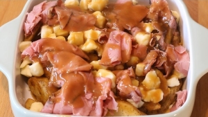 我管它叫“布丁”。Poutine真是简单的美食。薯条,奶酪加肉汁,怎么能不好吃呢。我在外面买的,多数放的是cheesecurds。也有放mozzarella的。上面的奶酪从来都是化的。能拉很长的那种。我在家自己做,cheesecurds从来没化过。不管我把汤烧多烫。我做错了什么?上网一查,原来这种奶酪就不容易化。有人问:Poutine里的cheesecurds因该是化的吗?有人说:是。有人说:不是。有[