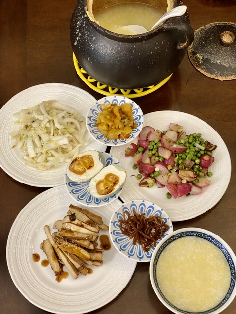 粥是:小米,黄小米、玉米渣,大米。黏糊又稀溜。