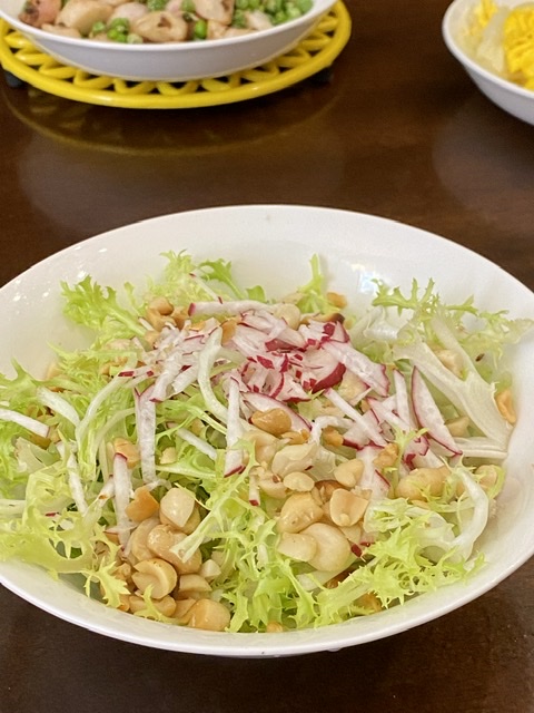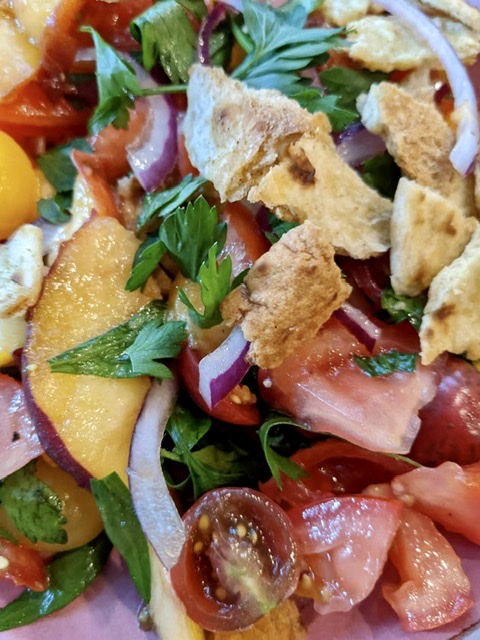 里面是桃子、西红柿、parsley、红葱头,我加了石榴和松子。