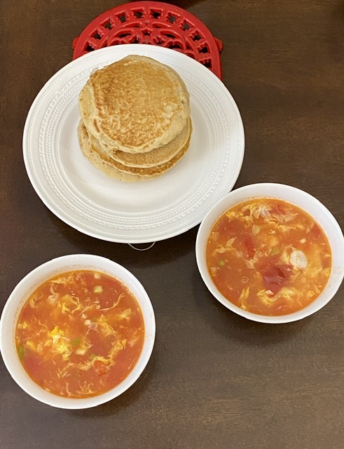 用heirloom西红柿,才有酸味儿,多加白胡椒粉。今天没香菜了,小葱也就几根了。
