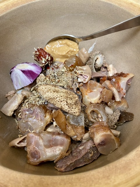 这是牛杂、是卤好的,但牛膻味很重,我觉得吃不了,就加了洋葱、姜片、陈皮、小茴香籽。