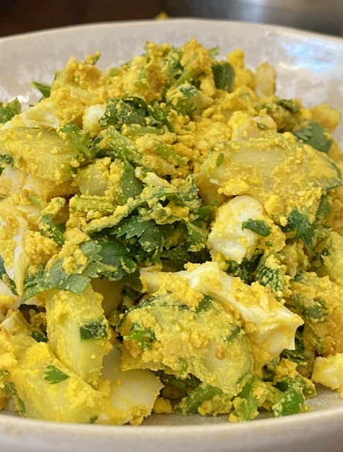 牛油果、西红柿、洋葱、鸡蛋、香菜、柚子蛋黄酱。