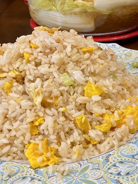 炒米饭,米饭当天做的,凉透,就可以炒。