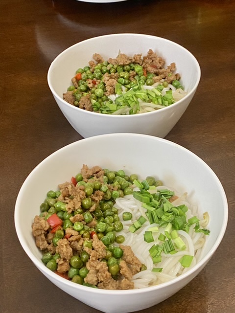省事,煮的云南白米线。炒一个豌豆肉末。