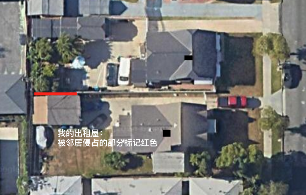 有一个在加州的出租屋的、紧邻车库墙壁的一小条地目前被邻居占着。