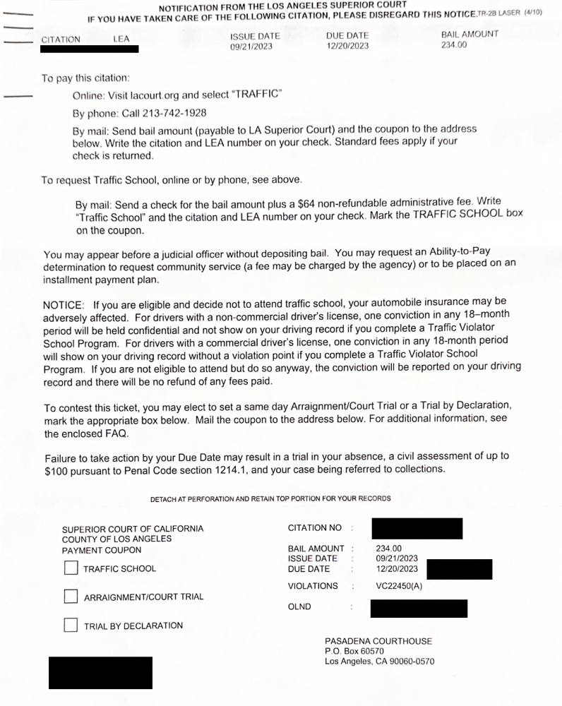 2023年9月,在家门口(南加州)收到一个failtostop的交通罚单$234,很不服,因为的确在Stop路标前完全停过后,才右转的。