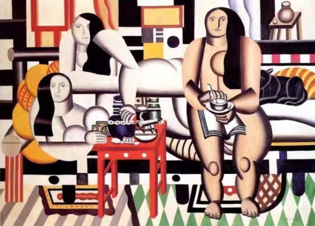 大概二十六年前我买到一本有关现代绘画的小画册。里面卢梭的《梦》,夏加尔的《我与村庄》,和费尔南德·莱热(FernandLeger)的这幅《三个女子》让我很是着迷,也许是因为画里稚拙艺术的成分。大学四年就要结束了,能够带走的东西并不多。这些也该算上吧。于是我把小册子连同少年强说愁的滋味一起塞进托运回家的行李里。