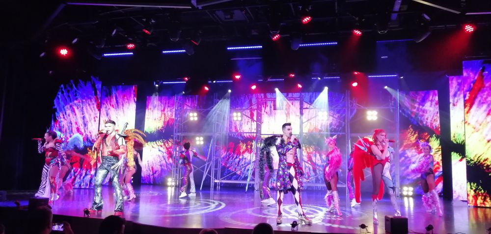 巴郎《船游散记》020劲歌热舞2023船游葡西英三国五方04一一一一这些艺人的表演风格独特,春兰秋菊,各有千秋,值得格外推崇的是headlinesco的歌舞表演队。表演队由20来岁刚出校门的年轻人组成,上演西区风格音乐剧、旧歌翻唱、魔术表演和喜剧秀。别看他们稚气没退,但他们训练有素,配合默契,一颦一笑一举一动,都透露着专业功夫。上得台来,载歌载舞,歌喉嘹亮,舞[