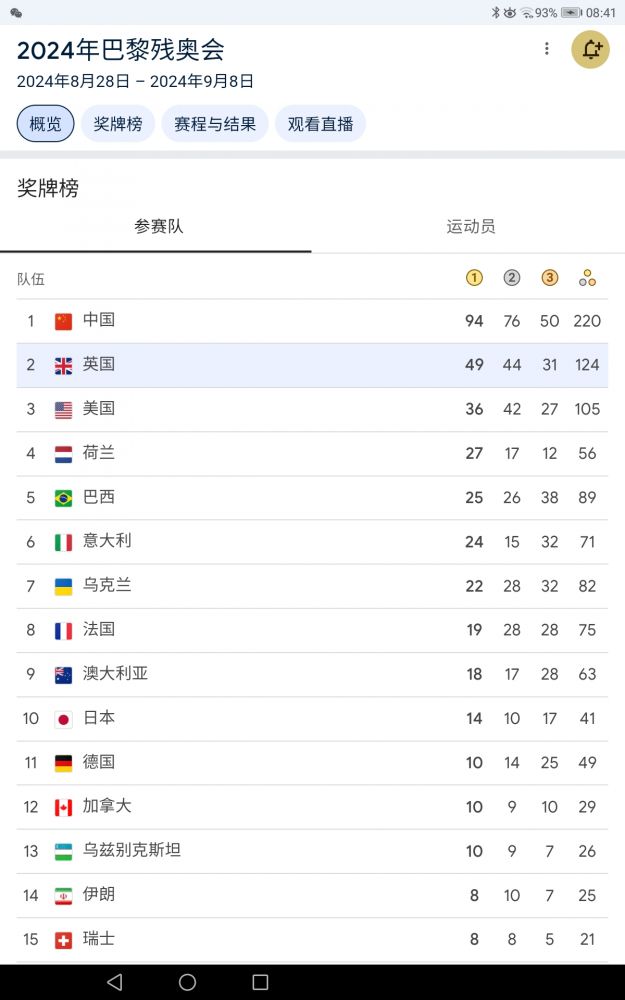 《残奥闭幕》巴郎20240908巴黎残奥2024历时11天,于今晚闭幕。一场运动盛会,让我们见证了残疾人坚毅不拔自强不息的群体形像。残奥项目涉及广泛,参与人众。其强度和难度,甚至我们非残人观之亦矫舌不已,叹为观止。但这些运动员却能驾轻就熟,顺利完成,甚至打破纪录,不得不说是创造了奇迹,改写了历史。让我们祝贺中英两国,超越群雄,位列榜首。这不仅证实两国[