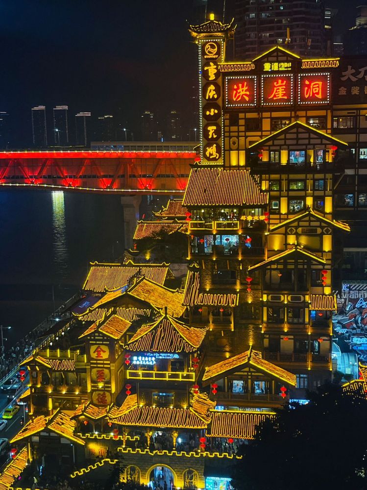 一一一一一一一一巴郞《秋游故乡散记》28《夜景未央》20231029周日阴雨11-25℃一一一一一一一一不识重庆真面目,只缘身在此城中。重庆因其多山丘陵,平面发展受限,转而向空中发展,摩天大厦,高楼林立。若干景点,如解放碑等,因其高度广度不及高楼,掩藏在城市森林中,虽说依然保持其历史重要性,但是周围的高楼,无形中弥漫着一种挤迫感,使人不由自主地呼吸不[
