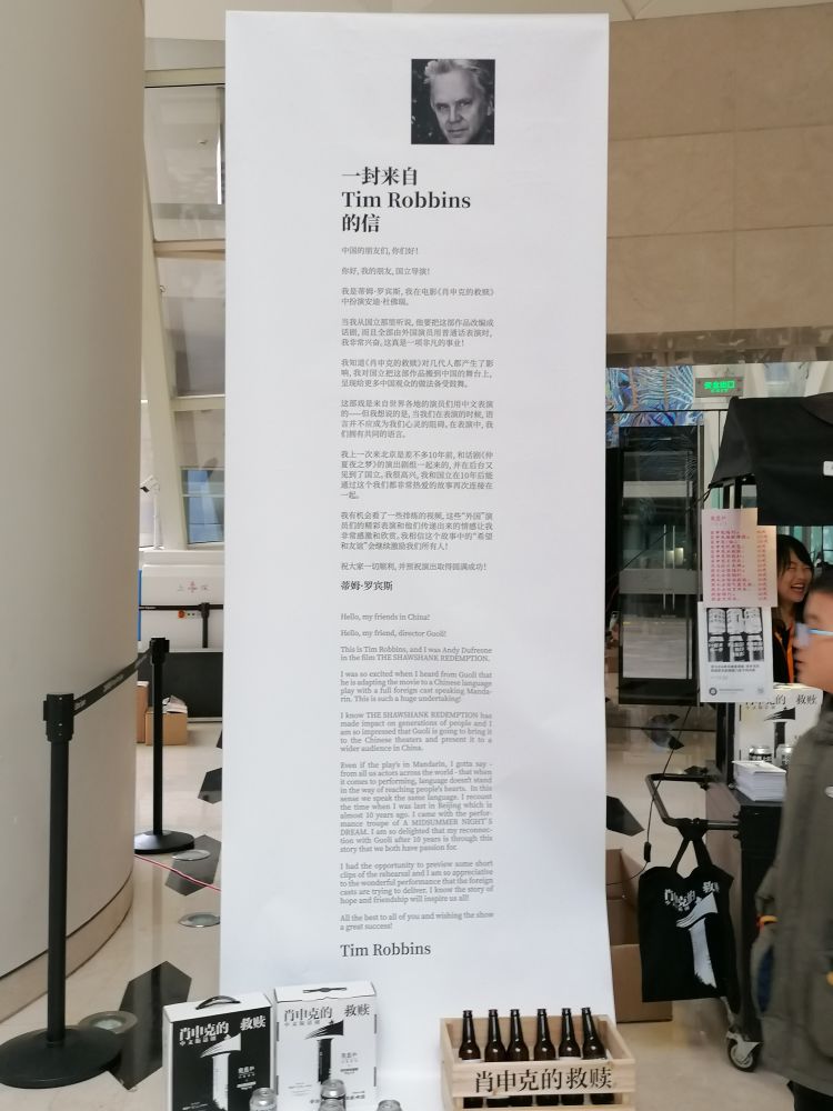 来自TIMROBBINS的信,他对这中文版话剧期许很高。