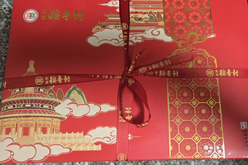 中国店卖的好像没有这个牌子的,我老公买回来一盒牛屎饼,特别难吃,话说真正的稻香村也不咋好吃,老公次回去我写了一个清单就是酥皮的还凑合,其他的干巴巴的不咋好吃。