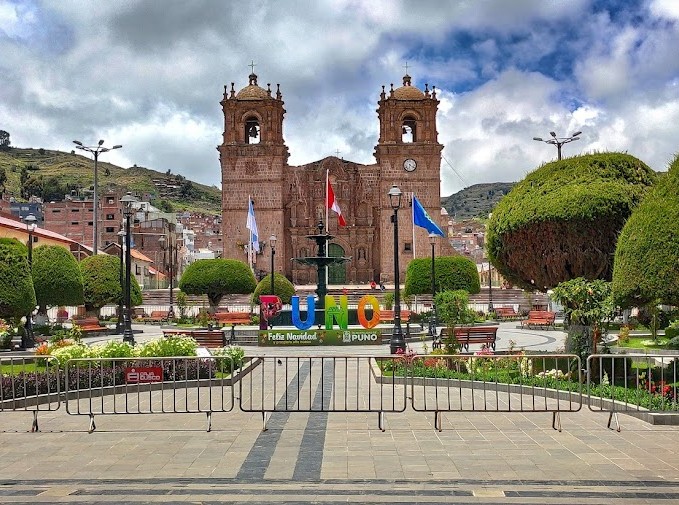游完马丘比丘后,我乘火车回到库斯科,然后乘坐夜班大巴Cusco->Puno普诺,头等舱,才$25。我一早抵达普诺,冻死人呀!穿上羽绒服,还是被冷得发抖。接我的车和船,是前一天白天一路游过来的朋友预定的,大巴站车接,送我到的的喀喀湖边;小船载我到朋友下榻的芦苇岛客栈。追赶了2天,我终于与朋友会合。普诺Puno,秘鲁普诺省的省会,高原城镇,位于的的喀喀湖西岸[