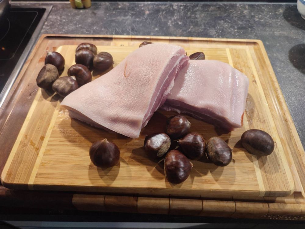 冬雪来了,风刮起阵阵寒意,雪后阳光却舍不得走似的,还弱弱地铺在街上。出门去买菜,看见有板栗,想到家里冰箱里还躺着一块五花肉,便买了一些。我回家切肉备菜,吩咐小妖剥栗子壳。夫妻一起准备周末晚餐了。