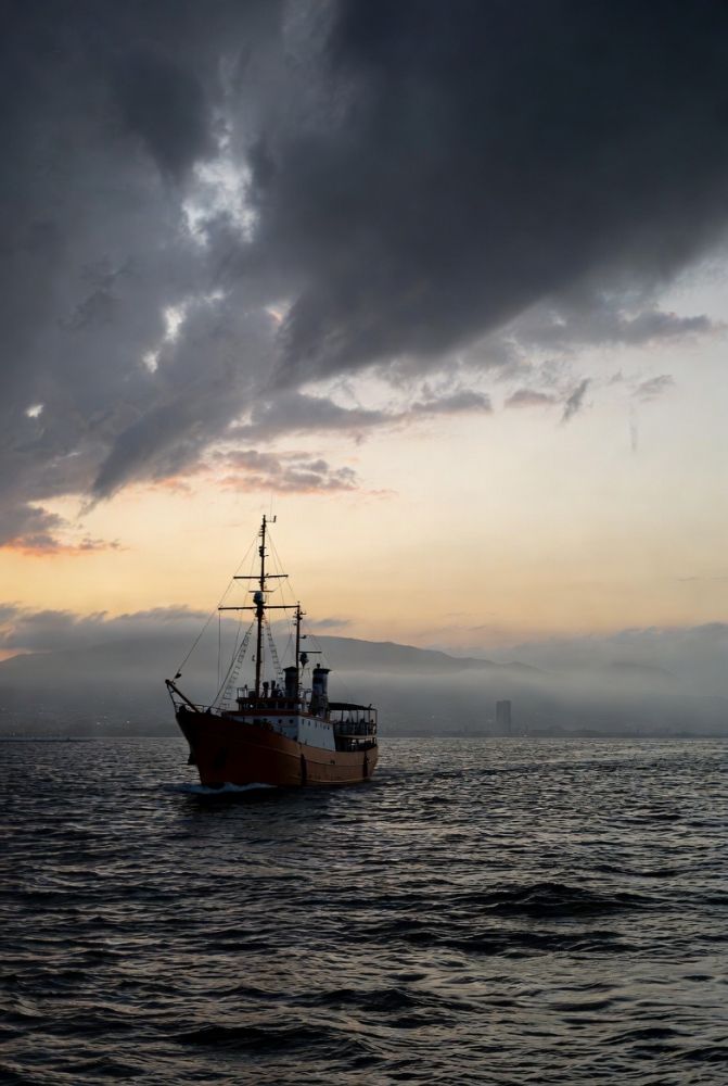 孤航者万顷苍茫里你是一枚烧红的碳被清冷的晨曦丢进大海却不肯熄灭。整座城市的喧嚣都还未苏醒远山在云影里屏住了呼吸只有你,背负着钢铁的沉思在波涛的皱褶里写下一个动词。[
