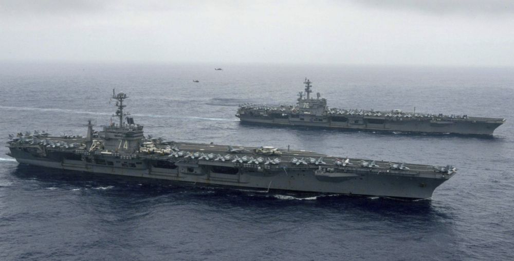 随着华盛顿在亚洲的经济和政治参与度下降,且看不到任何逆转的迹象,军事威慑成为美国在亚洲战略中仅存的手段(下图thejapantimes)。然而,已然削弱的美国传统区域安全策略,正日益招致危险。其最初的目标是阻止北京改变该地区任何地方的领土现状,这就要求美国在亚洲大陆沿岸维持前沿防御圈。美国经常派遣舰艇和飞机在中国大陆近海活动,以防止大陆[