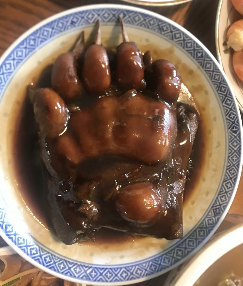太厉害了,没吃过熊掌,只吃过鹿肉,朋友经常和公司里的同事一块去打鹿,感觉鹿肉有点硬。