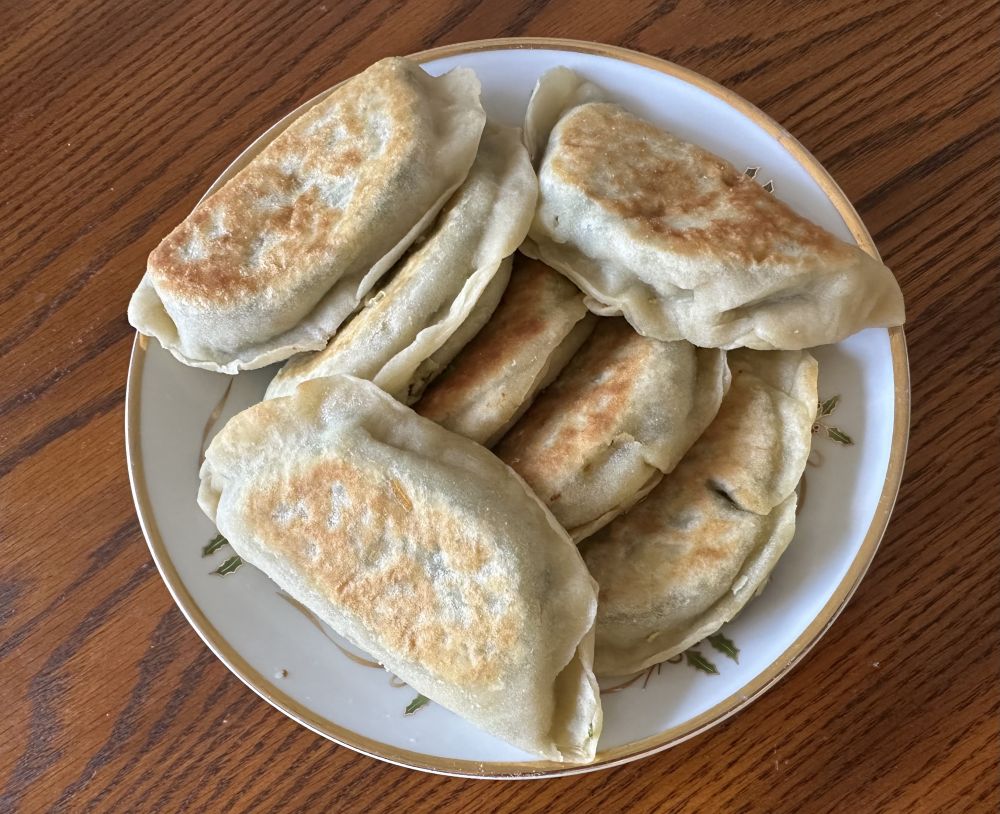 3 回家发扬连续作战的作风,包韭菜盒子,之前交待老公把韭菜割了,我回来做。