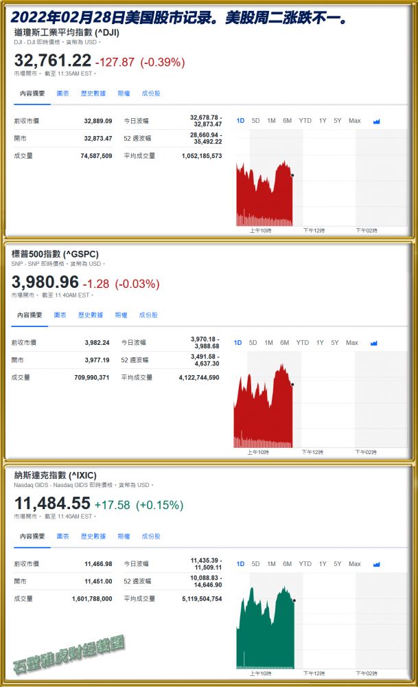 2023年03月01日美国股市记录。