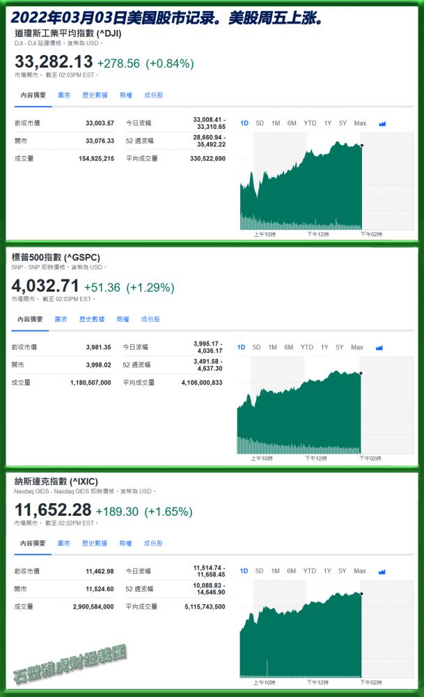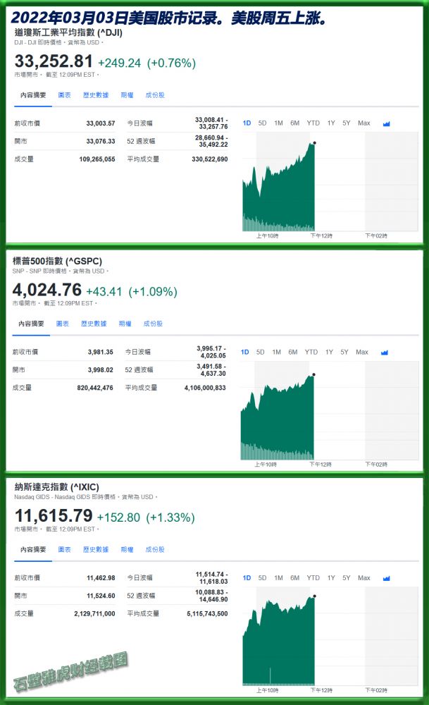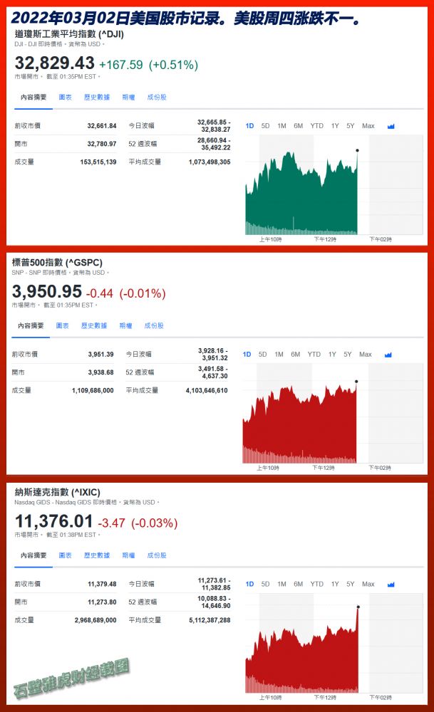 2023年03月03日美国股市记录。