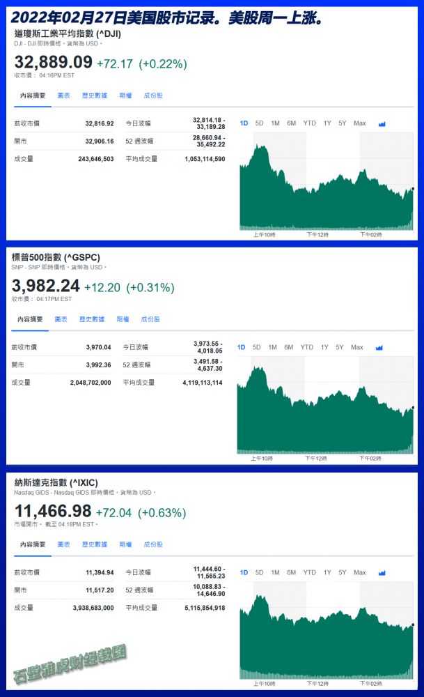 2023年02月27日美国股市记录。