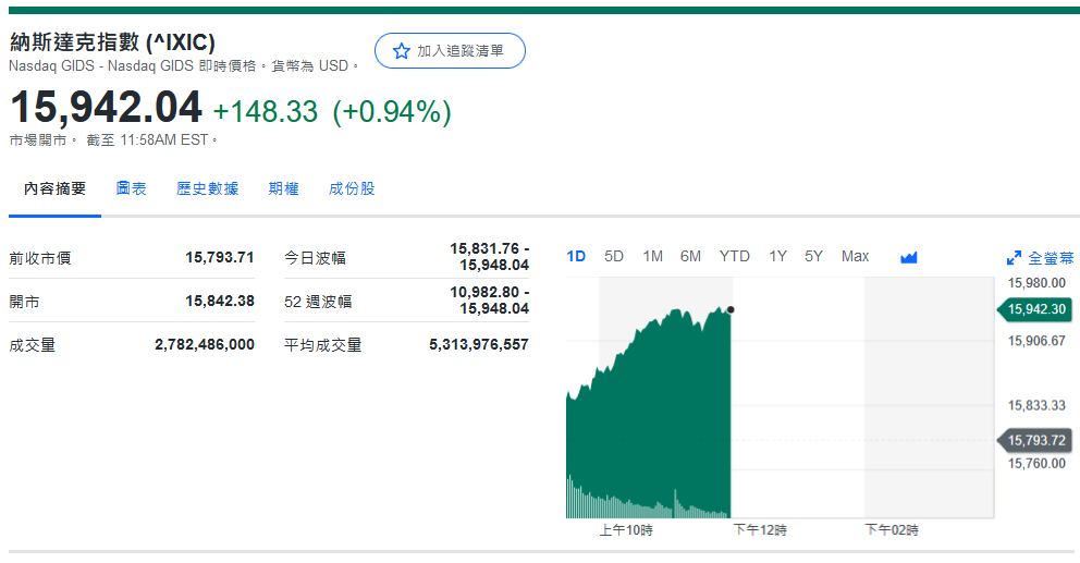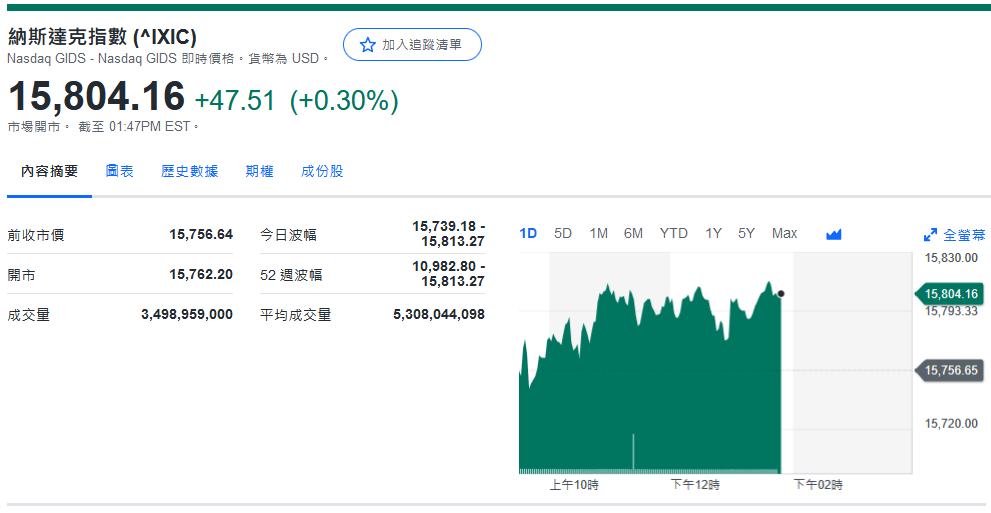 纳指收15,793.71+37.07 (+0.24%)