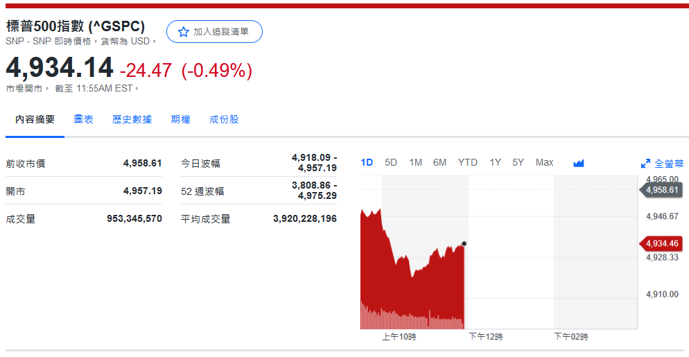 标普收4,942.81-15.80 (-0.32%)