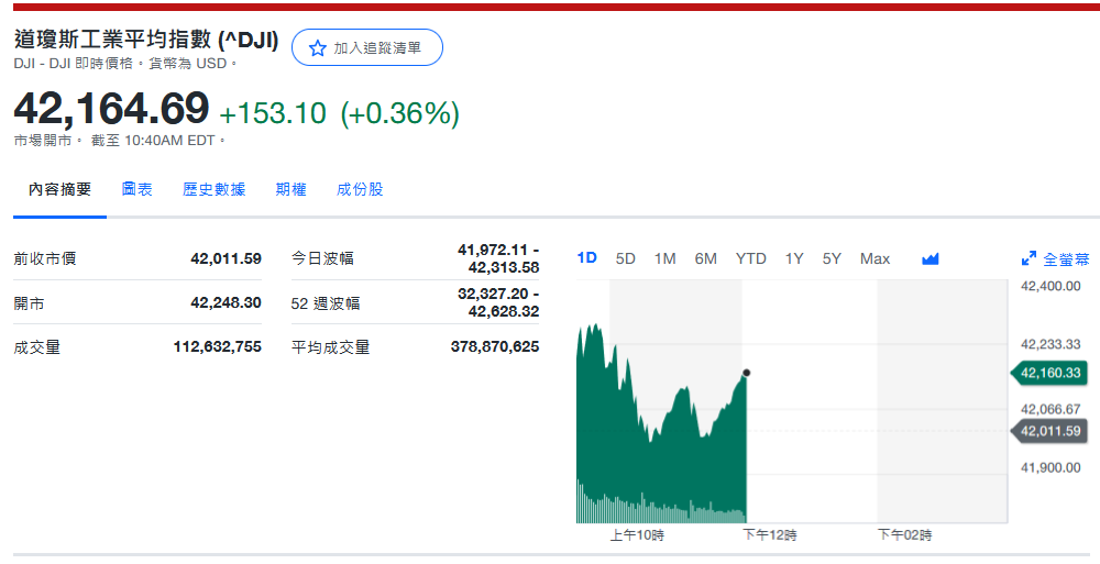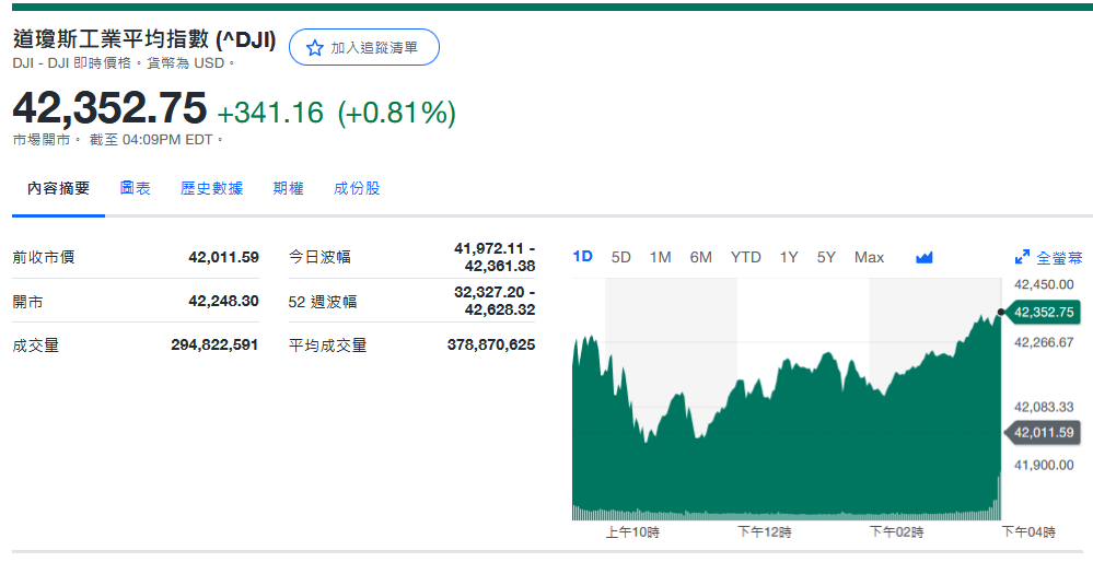道指收42,352.75+341.16 (+0.81%)
