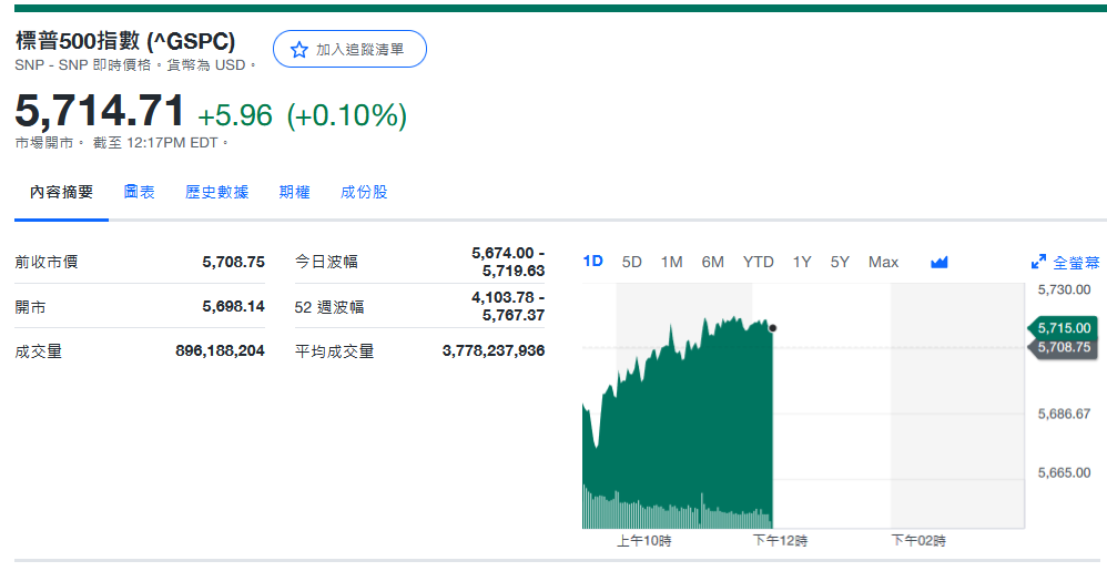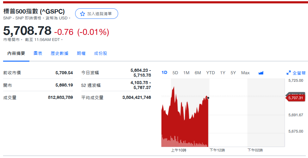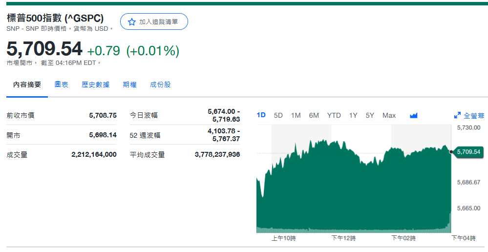 标普收5,709.54+0.79 (+0.01%)