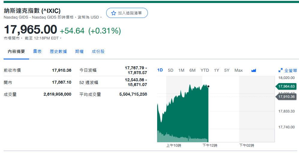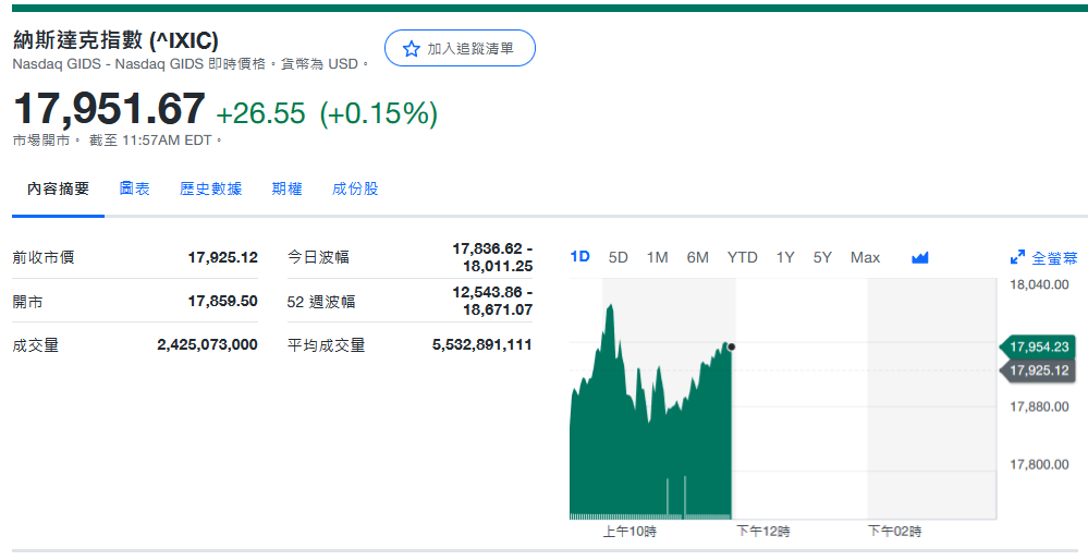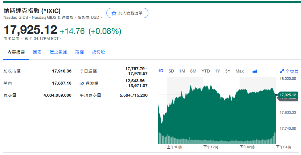 纳指收17,925.12+14.76 (+0.08%)