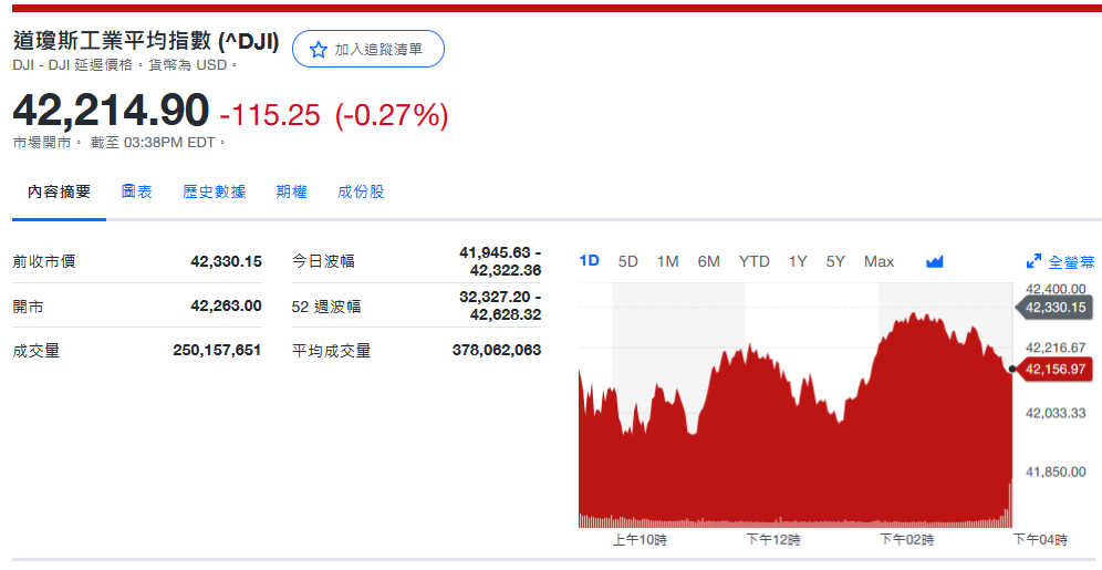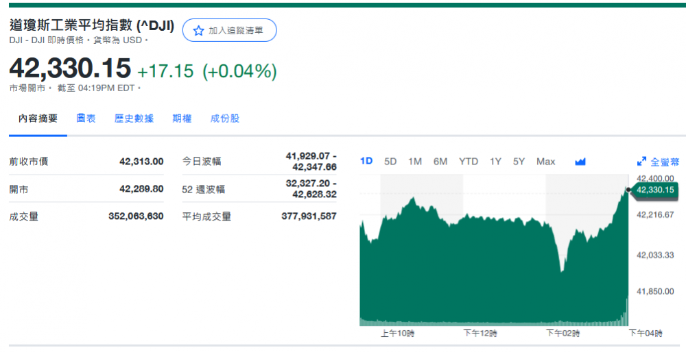 道指收42,330.15+17.15 (+0.04%)