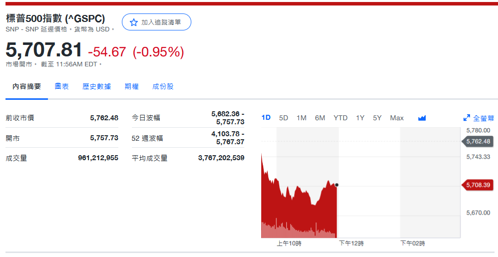 标普收5,709.41-53.07 (-0.92%)