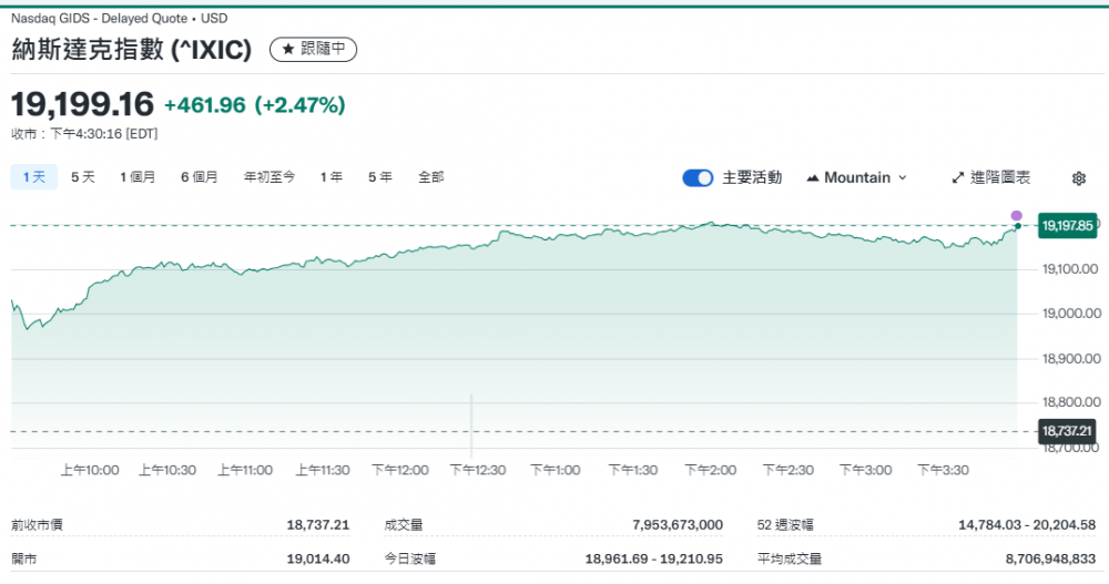 2025年5月27日美国股市收盘记录。三大指数大涨收盘。
