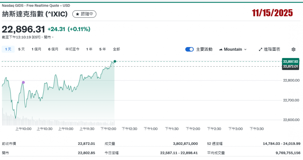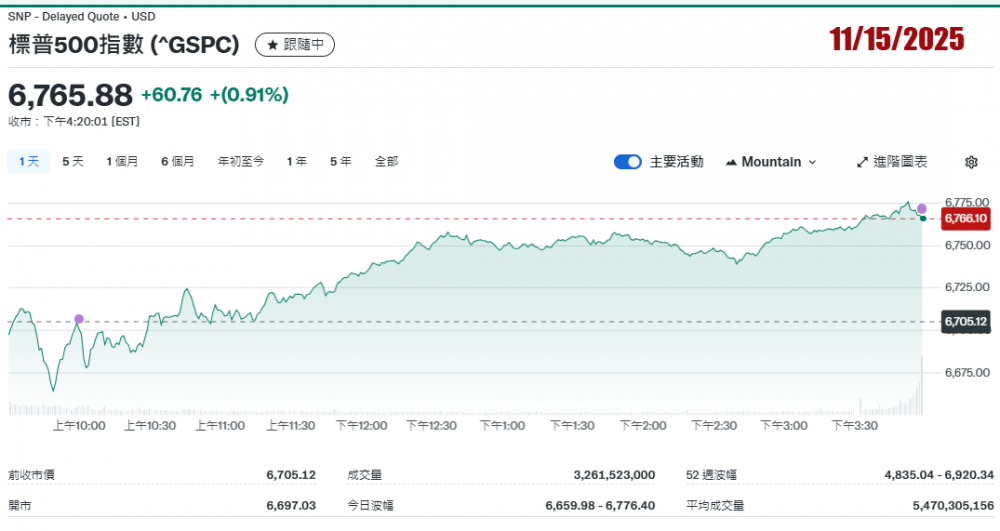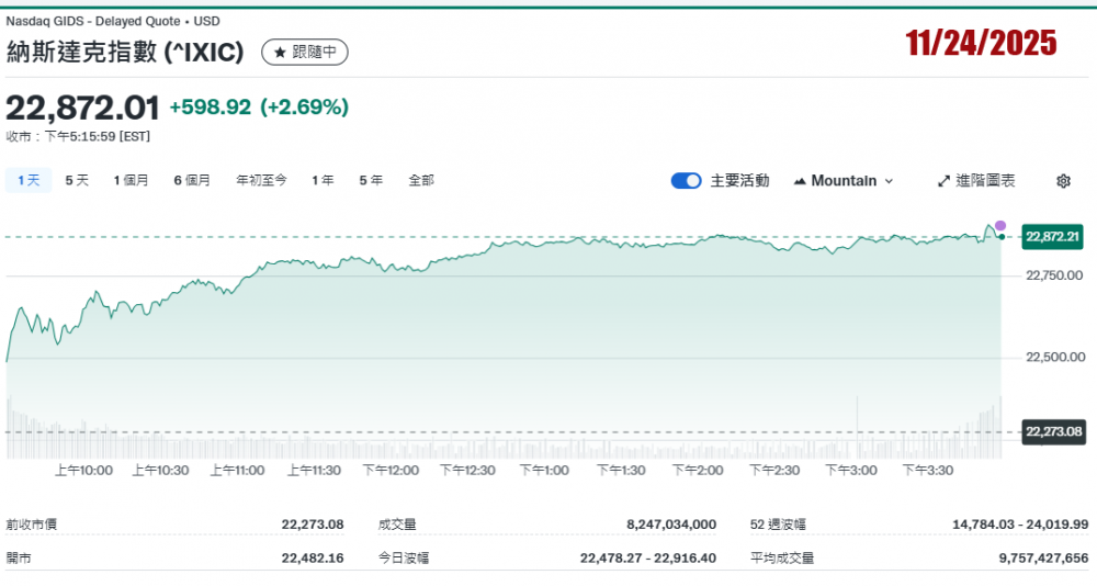 2025年11月25日美国股市收盘记录。三大指数上涨收盘。