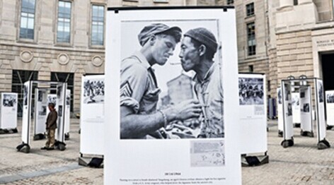 2014年10月15日,“国家记忆:二战中的中美合作”照片展在美国华盛顿里根大厦外展出。这些珍贵的老照片曾长期尘封在美国国家档案馆,由章 东磐等中国学者重新发现。(本刊记者 温宪 摄)(人民网)