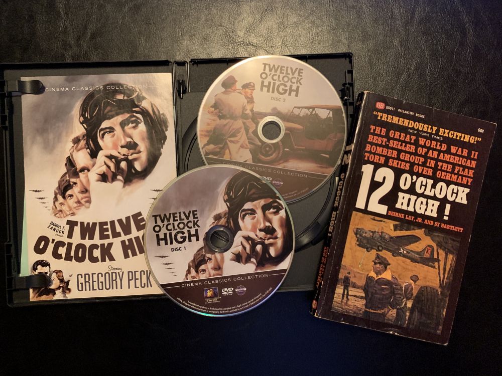 此影片由格里高利.派克主演,被美国许多MBA课程用作关于领导力的学习案例。片名Twelve O’clock High取自空军描述方位的术语,意为正上方。影片是关于空战的故事,但全片仅在最后十五分钟有关于战斗的场面,空战的远景取自二战时欧洲战场的真实镜头。其中人物是基于一系列美国空军的原型人物写成,全剧中的每一个人物,每一个动作,每一句台词,都真实而且没有浪费,对人物性格的挖掘和展现绝非现今的“大片”可比。此片有中文字幕版,其中文名称翻译为《晴空血战史》,但此译法完全失去了原名的意境,不如译作“敌情正上方”。虽配有中文字幕,但翻译有很多失准甚至误导之处,建议大家直接观赏英文原版为佳。压题图片为我在“亚马逊”上以$50淘得时价仅60美分的1948年的原版书,和DVD。