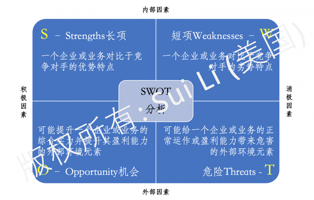 战略规划的基础是对于经营环境的全方位的扫描,把包括政治,经济,技术,应用,公司,产品,团队,竞争,等内部与外部各个领域的变化因素对自己公司业务的影响进行SWOT分析,对各种因素按照最好和最坏情况设定好上下限范围,再找出每种因素最可能发生的情况作为计划的基准,按此基准情况设定保底的基本目标(baseline goal)。然后分析各个相关方面向好的方向和坏的方向发展的驱动因素(business driver)制定出相应的应对策略,并通过对各个驱动因素的发生概率和对业务影响程度的判断,制定努力争取实现的“挑战目标”(stretch goal),由此形成行动计划,落实相应需要的资源配置,再建立闭环的对阶段性结果的定期审查和修订机制。