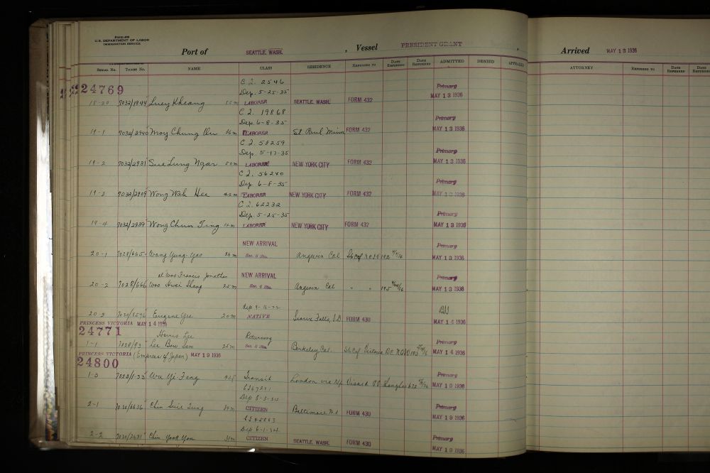 吴贻芳1936年从西雅图进入美国,NARA网上的文档名又是尴尬的“#N/A”,ID=143740990,p101上有维多丽亚公主号(Princess Victoria),又名日本皇后号(Empress of Japan),猜想是到不同地方用不同名字。1936年5月19日抵达西雅图港,