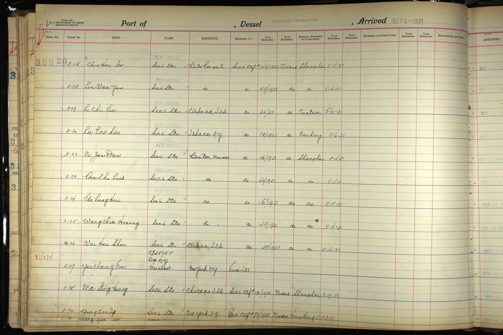 抵达港:西雅图,抵达日期:1921年9月5日。