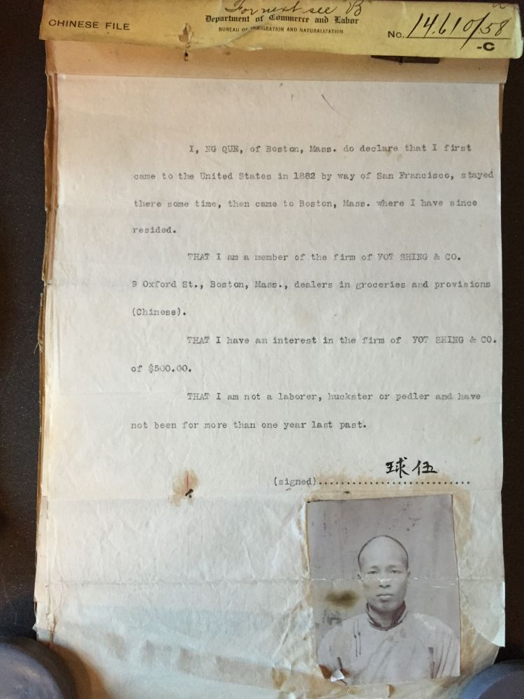 NARA上档案:“Case File for Ng Que”,ID=19086648,2图,加PDF。Ng Que是伍球,p1上有他签名。p2是Form 429,拒绝了他的申请。有意思的是Form 429上半部分是英文,下面是中文翻译,可以看看那个年代中文的表述,日期是1906年5月,所以还是大清,今天看来很有意思,有些还看不太懂,反要去看英文,比如:“汝所做来懇求進花旗此纸”,应该是说“你提交的入境美国申请”,又“但亦有批判”,不知何意,看对应的英文,似乎是“from this decision”;“officer in charge”翻译为巡差头。不过毛笔写的很有力道。