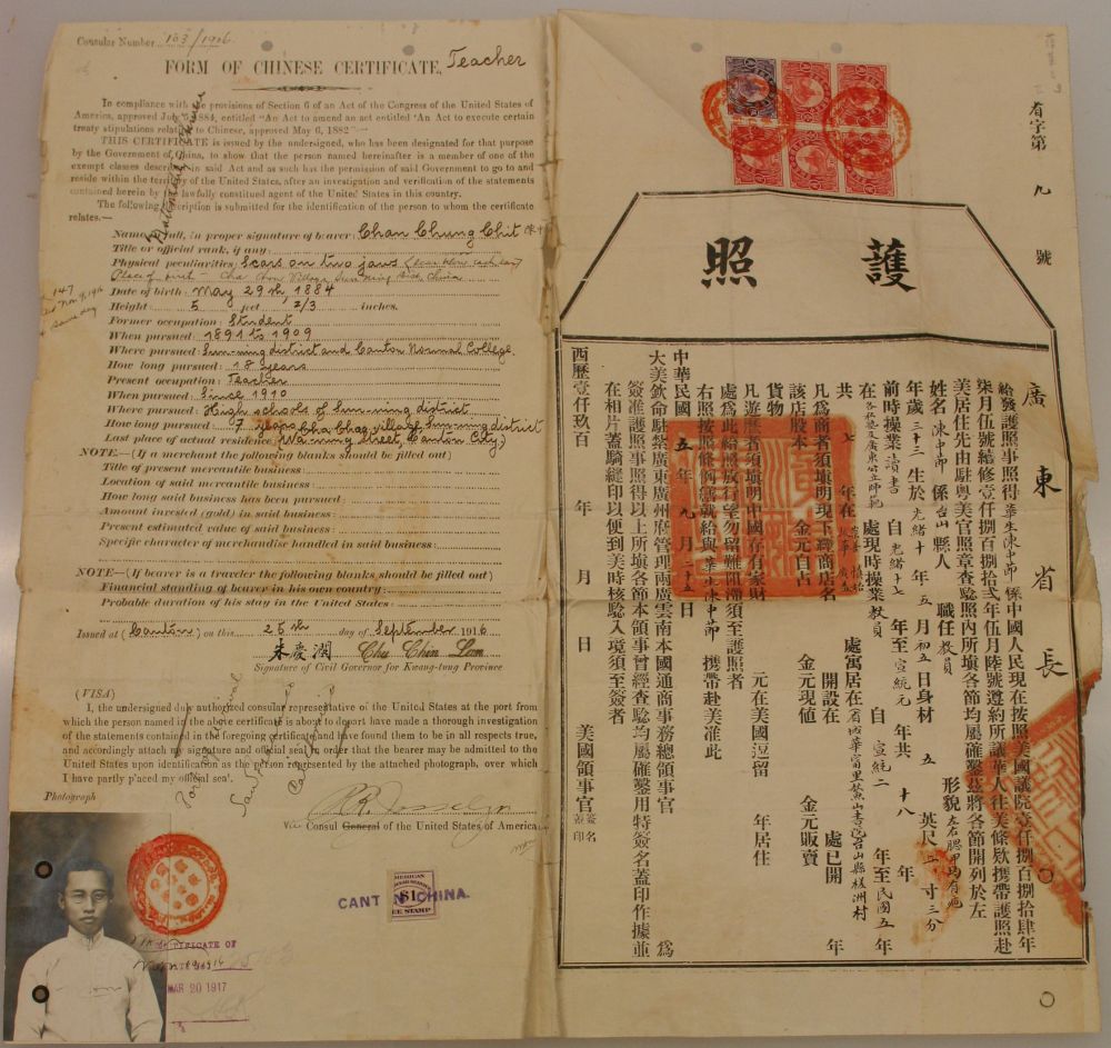 給發护照事照得華生陳中節係中國人民現在按照美國議院壹仟捌佰捌拾肆年