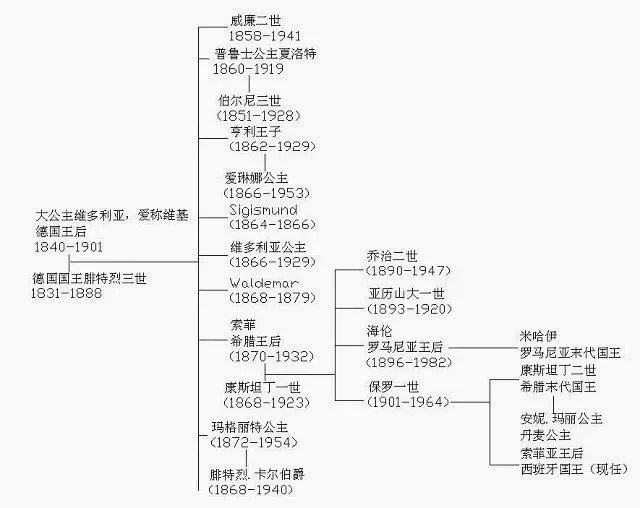如下是欧洲奶奶,维多利亚族谱: