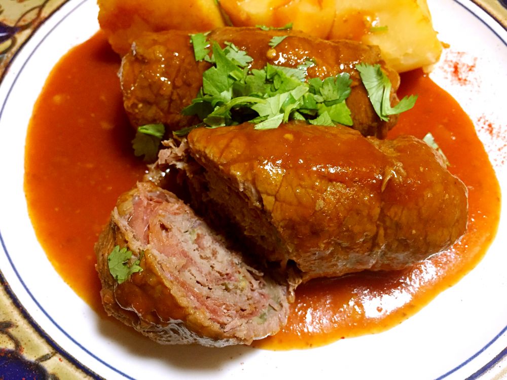 品尝下来的口感我认为这在德国也不是什么上品菜,而是啤酒馆里的下饭菜。这一个菜加肉汁,可以下一大块面包,再来一大杯子啤酒,然后五个铜板搞定,再去扛一下午大包那种。这种猜测是因为这食材决定了一切,割成牛肉片的也不会是什么高档牛肉,卷肉(原版)的五花肉肥肉与腌黄瓜,这样两个小时炖出来味道很咸重,不难吃但是肉质很柴。这处处体现了这道菜因是属于战前的蓝领阶层的特色菜。