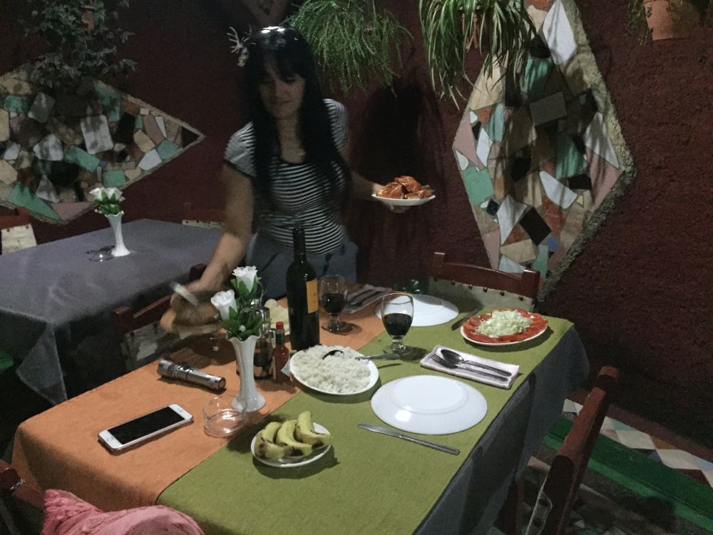 备餐中的阿里尔。可以看到桌上的高强LED手电,只是我们有备而来的,乡下基本上没有路灯。网络几乎是零,但是谷歌地图的GPS还是有滴。